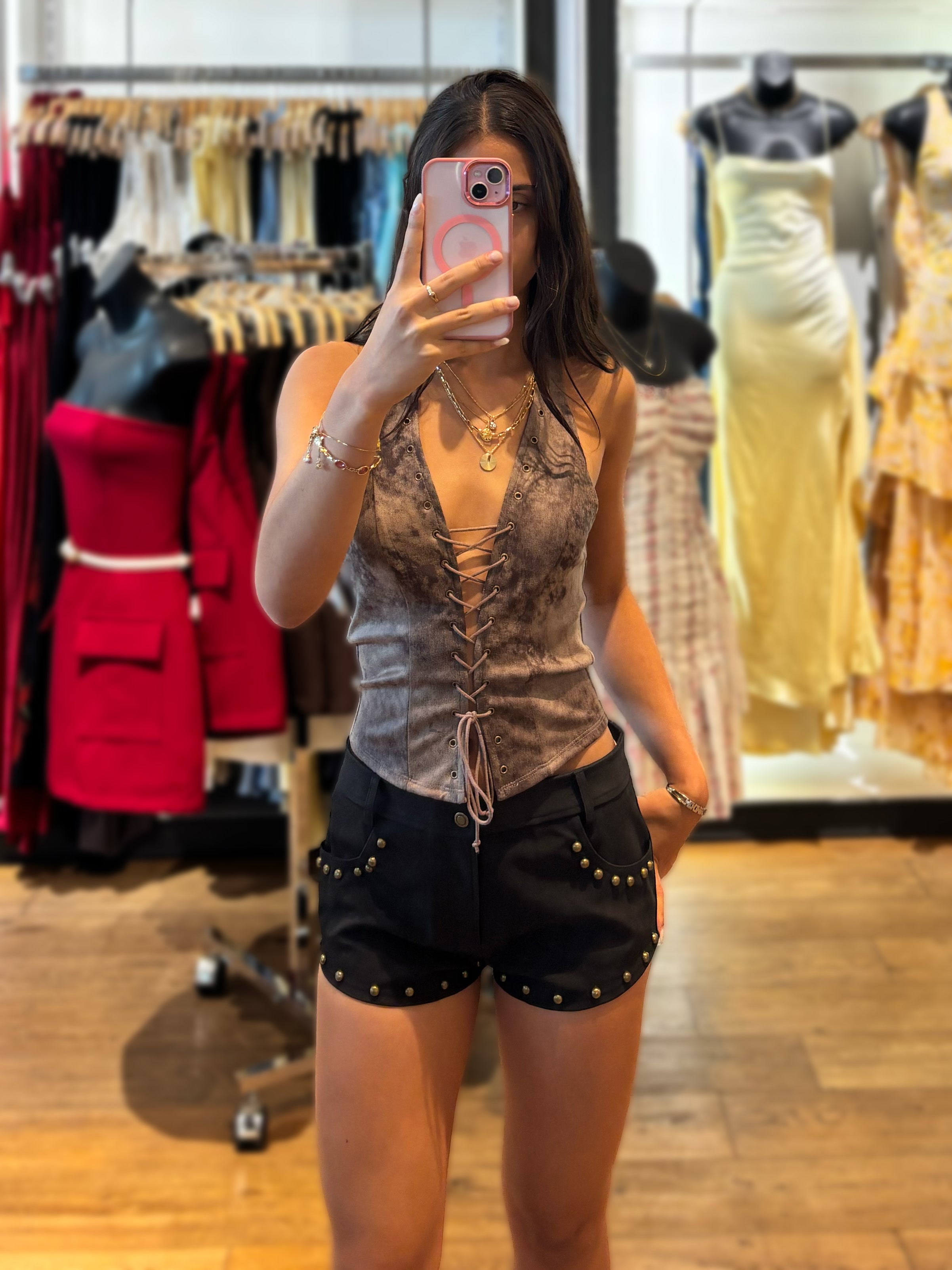 Faux Leather Lace Up Halter